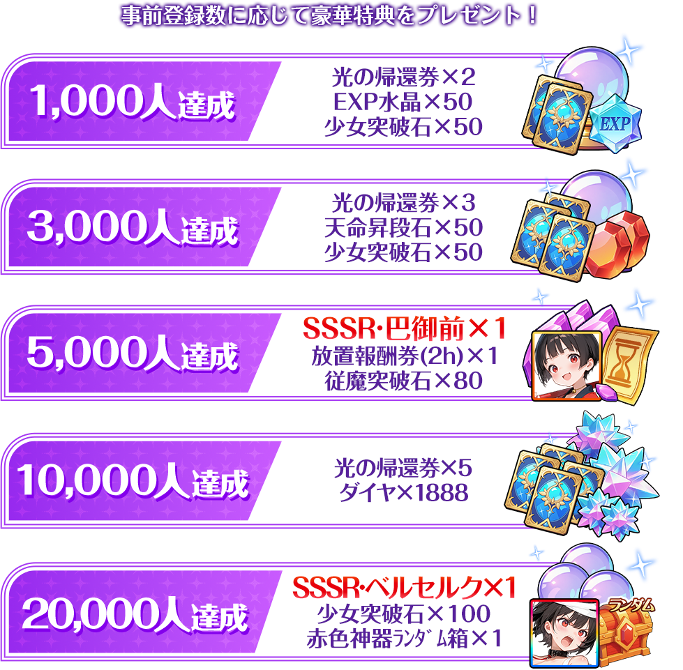 ※ 事前登録報酬は、リリース後1週間以内に配布いたします。
